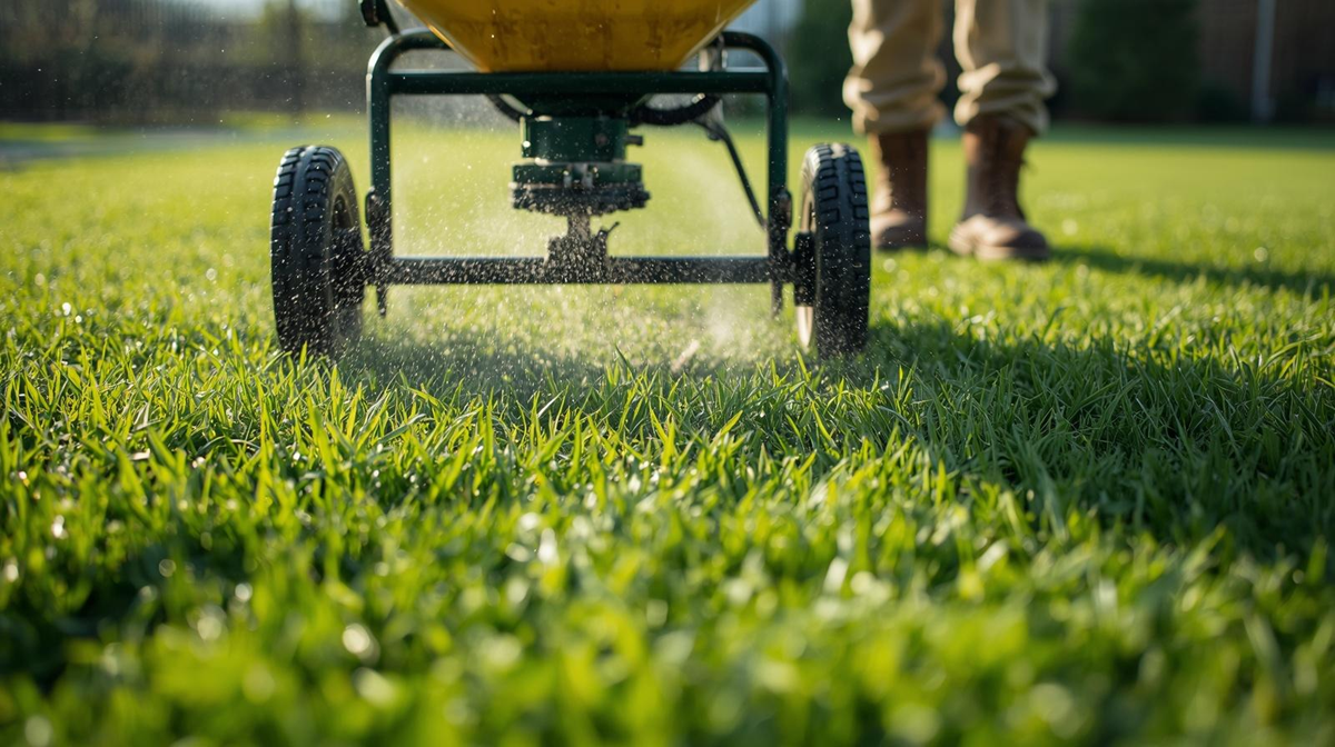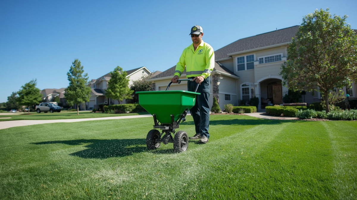 For larger residential lawn properties, the team uses commercial-grade spreader equipment to ensure even coverage and efficient application while avoiding over-fertilizing.